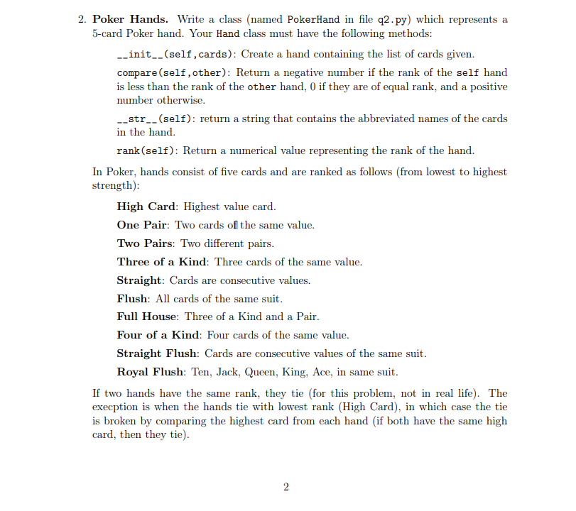 Solved 2 Poker Hands Write A Class Named Pokerhand In Chegg Com